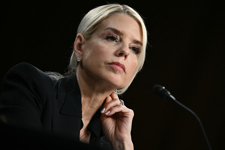 トランプ米大統領は2日、ボンディ司法長官(写真)を解任した。米富豪ジェフリー・エプスタイン氏の事件を巡り、ボンディ氏の対応に不満を募らせたのが要因とみられる=2025年10月撮影 【AFP時事】