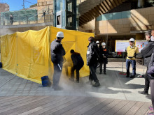 元麻布の雑居ビルの屋上にある「Merry Garden屋上農園」で10月10日、稲刈りや野菜の収穫祭が行なわれた。
