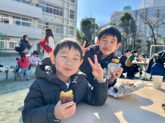 焼き芋イベントが1月18日、六本木中学校(港区六本木6)で開催され、近隣の居住者やワーカーなど約200人が参加した。