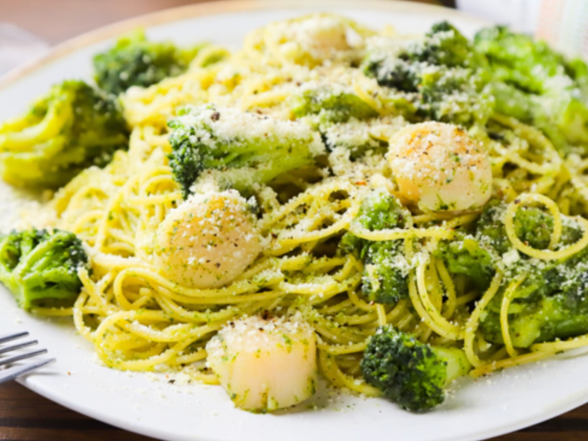 「ホタテとブロッコリーのジェノベーゼパスタ」