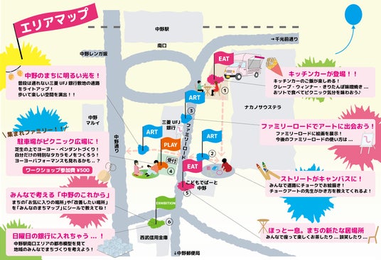 当日は、中野駅南口エリアの道路や駐車場が、1日限定の「あそび場」と「憩いの場」に変わります。