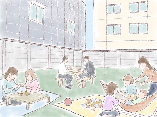 ▲ピクニックによるくつろぎのイメージ(芝生エリアはお子様も安心して遊べます)