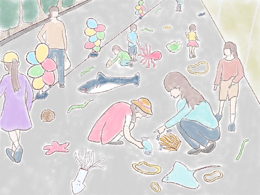 ▲チョークアート体験のイメージ(子どもたちの絵がまちを彩ります)