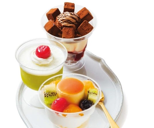 喫茶店のメロンソーダをイメージしたゼリー、昔懐かしいプリンアラモード、生チョコたっぷりのチョコレートパフェを可愛らしいサイズに。レトロな喫茶店スイーツがプチデザートになりました。