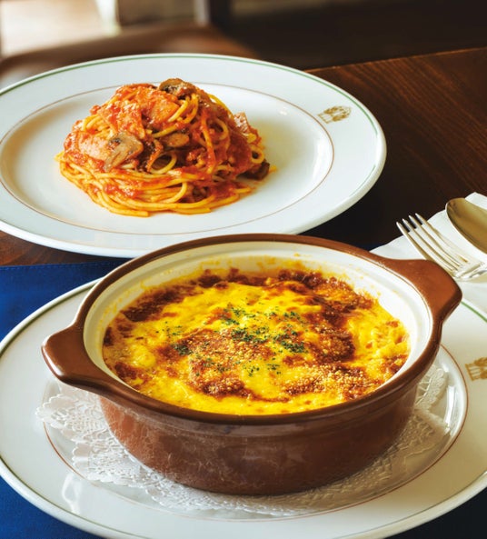 長い歴史の中、大切に受け継がれてきた伝統メニューがギフトに。昭和2年開業以来、横浜を訪れる数多くのゲストを迎えてきた<ホテルニューグランド>。初代総料理長がお客様のリクエストに応えて考案したホテル発祥メニューであるドリアは、たっぷりの具材と、甲殻類の旨みが詰まったコク深いなめらかなソースで仕上げた一品。同じく<ホテルニューグランド>が発祥のスパゲッティナポリンは、シンプルながらトマトの酸味や甘みが引き立つ味わい深さが魅力のメニューです。
