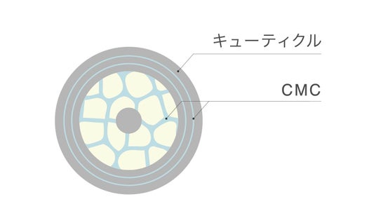 CMCとは、髪内部に潤いや美容成分を届け、潤いや成分を保つ働きをする脂質です。スキンケアにも使われるアミノ酸系の脂質であるCMC類似成分*?を配合し、髪の内部までしっかり届いて集中補修。ハリ・コシがあり、乾燥などのダメージに負けない髪へと導きます。