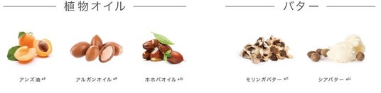 植物オイル*? ? ??やバター*?? ?? がヘアオイルをなじませたようなツヤと柔らかな手触りを