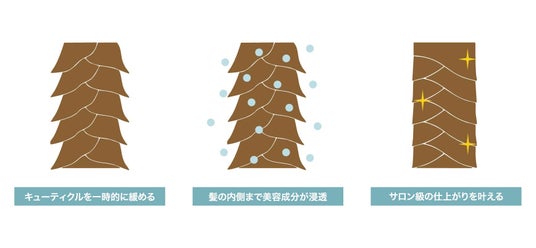 髪表面をゆるめて、美容成分を浸透させる。