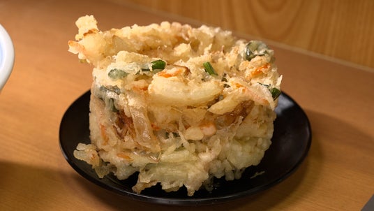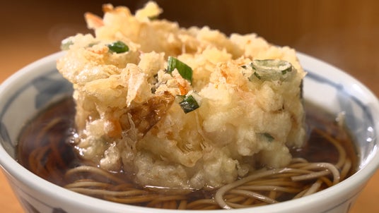 新国立劇場の目の前にある、そばうどん「加賀」の名物は「かき揚げ」。