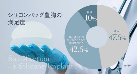同アンケートでは、豊胸後の違和感に対して修正治療を検討したことがある人が85% にのぼりました。その内訳を見ると、「検討したことはあるが、除去や入れ替えはハードルが高く迷っている」(50%)「シリコンバッグの除去や入れ替えを考えている」(35%)という結果となり、気になってはいるものの、大がかりな手術には踏み切れないという実情が浮き彫りになっています。