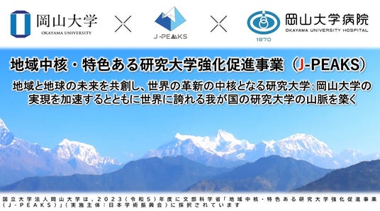 - 岡山大学 文部科学省「地域中核・特色ある研究大学強化促進事業(J-PEAKS)」に採択~地域と地球の未来を共創し、世界の革新の中核となる研究大学:岡山大学の実現を加速とともに世界に誇れる我が国の研究大学の山脈を築く~