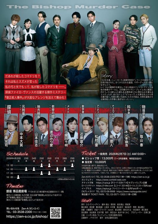 2026年4月22日(水)~4月29日(水・祝)まで銀座・博品館劇場にて、舞台『ビショップマーダーケース』を上演いたします。
