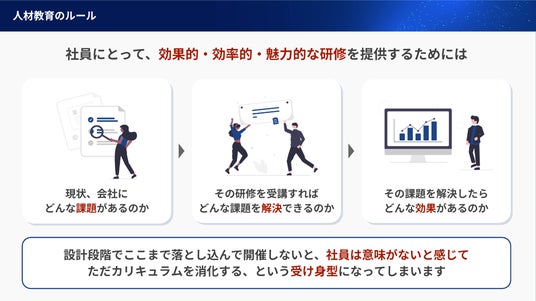 しかしその一方で、受講生の学習意欲が上がらない、教育が業績向上につながらないといった課題も多く見られます。