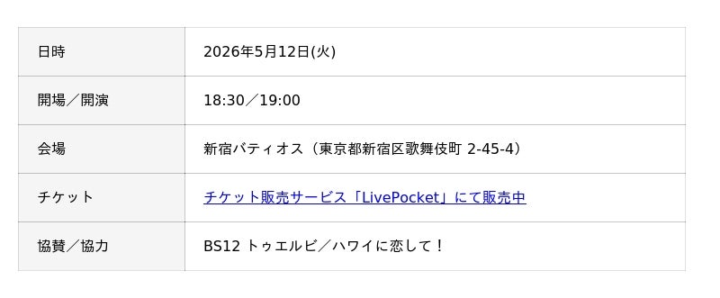 ※チケット販売期間:2026年5月12日(火) 19:00 まで