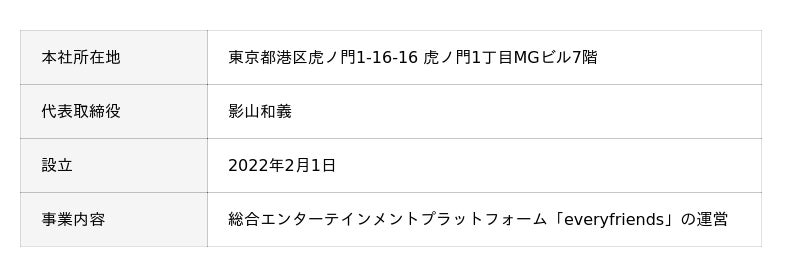 エブリライブ株式会社 会社概要